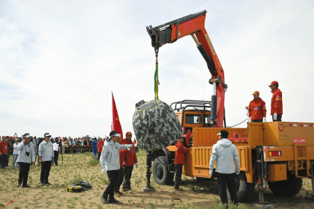 在降至距地面約10公里高度時,返回器打開降落傘,完成最后減速并保持姿態(tài)穩(wěn)定,隨后準確在預定區(qū)域平穩(wěn)著陸。