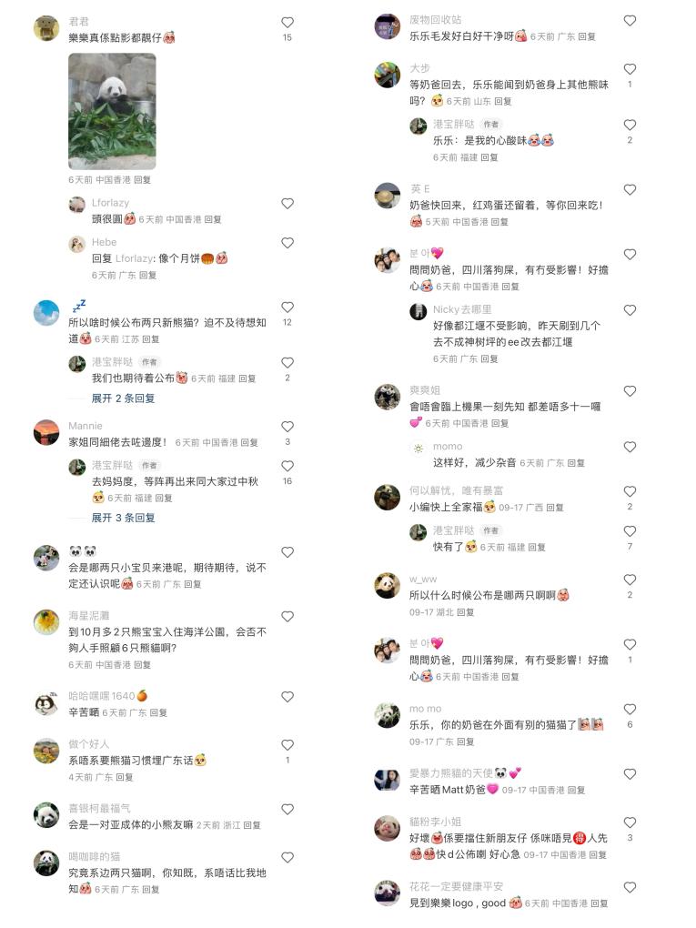可愛的國寶牽動眾多“熊貓迷”的心,隨著贈港大熊貓消息的更新,網(wǎng)友們熱議的話題從“新熊貓是誰”“新熊貓何時(shí)能看到”,變成了“等‘奶爸’回去,樂樂能聞到‘奶爸’身上其他熊味嗎”“照顧6只熊貓人手夠嗎”“給新熊貓起什么新名字”……