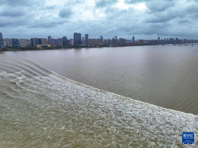2024年9月19日拍攝的錢(qián)塘江潮水(無(wú)人機(jī)照片)。每年中秋節(jié)前后是錢(qián)塘江潮水的最佳觀(guān)賞期,被譽(yù)為“八月十八潮 壯觀(guān)天下無(wú)”。(圖片來(lái)源:新華社記者 江漢 攝)