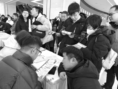 2月5日,正月初八,太原市新春首場大型招聘會在山西太原人力資源服務(wù)產(chǎn)業(yè)園拉開帷幕。上午9時許,現(xiàn)場的求職者便已經(jīng)比肩接踵,全力奔赴各自心儀的企業(yè)展位?!皪徫欢?,求職者也多,感覺比過年時逛廟會還熱鬧?!鼻舐氄呲w先生笑著說。