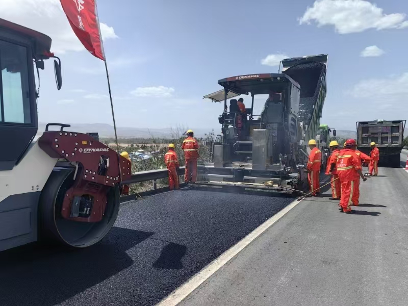 趁熱攻堅(jiān),汗水澆筑通途。“瀝青攤鋪必須‘趁熱打鐵’,溫度越高,路面壓實(shí)度、密實(shí)度就越好!”項(xiàng)目技術(shù)負(fù)責(zé)人解釋道。烈日炙烤下,瀝青混合料溫度高達(dá)160℃,升騰的熱氣裹挾著刺鼻氣味撲面而來,但施工人員手持鐵鍬、緊盯攤鋪機(jī)的身影卻始終堅(jiān)定。每一車瀝青的傾倒下料、每一寸路面的均勻碾壓,都需要在幾分鐘內(nèi)精準(zhǔn)完成。豆大的汗珠順著安全帽檐滴落,在瀝青路面上瞬間蒸騰,施工人員的工作服早已被汗水浸透,又在高溫中反復(fù)曬干,嶄新的道路,就這樣在灼熱與堅(jiān)守中悄然延伸。