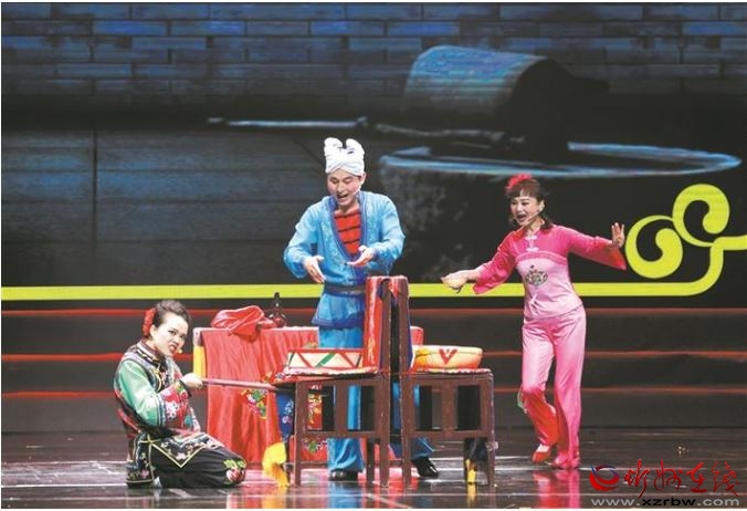 近日,“唱響黃河 再望西口”河曲民歌、二人臺專場節(jié)目展演在忻州大劇院精彩上演。圖為傳統(tǒng)二人臺小戲《壓糕面》表演。