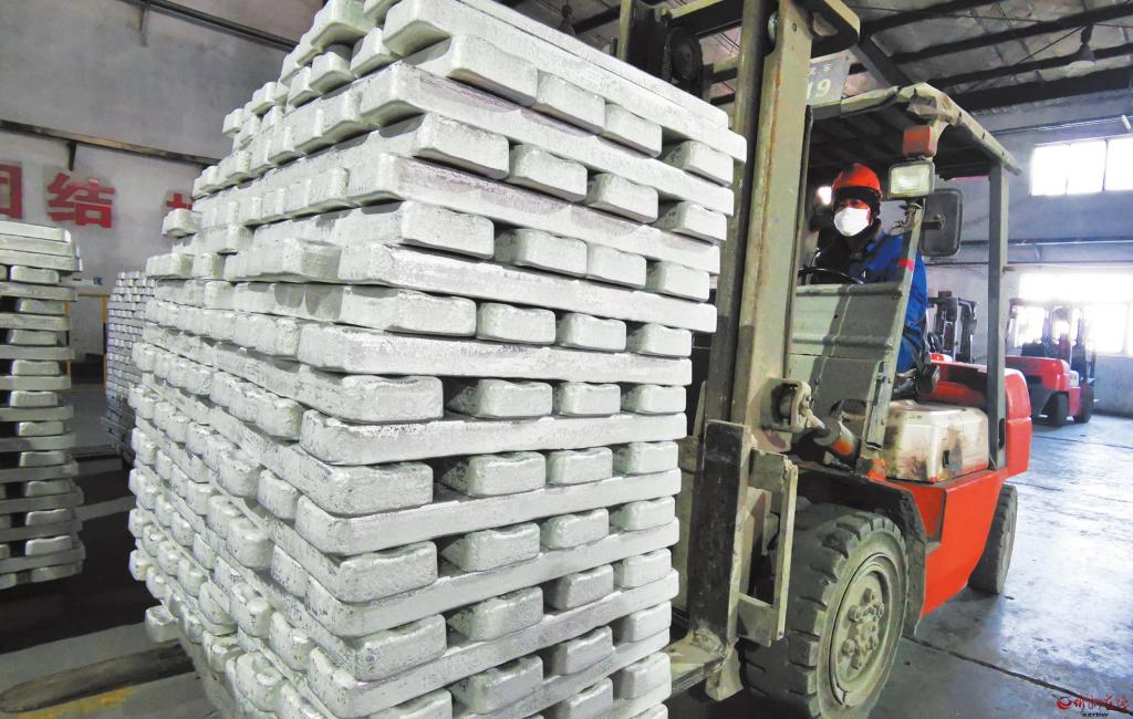 五臺云海鎂業(yè)工人正在進行成品轉(zhuǎn)運。 張存良 攝