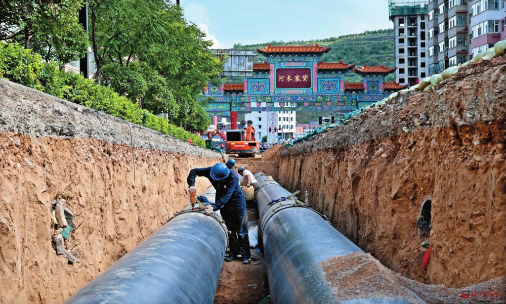 縣城主干道管網(wǎng)鋪設(shè)施工現(xiàn)場(chǎng)。 本報(bào)記者張存良攝