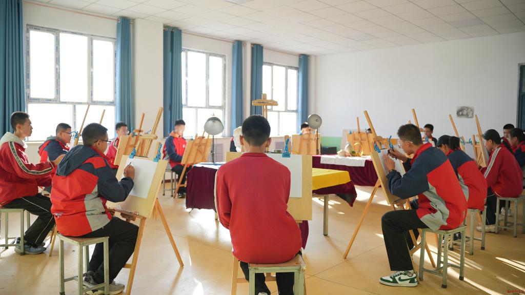 陽(yáng)方口中學(xué)美術(shù)課堂。郝永峰 攝