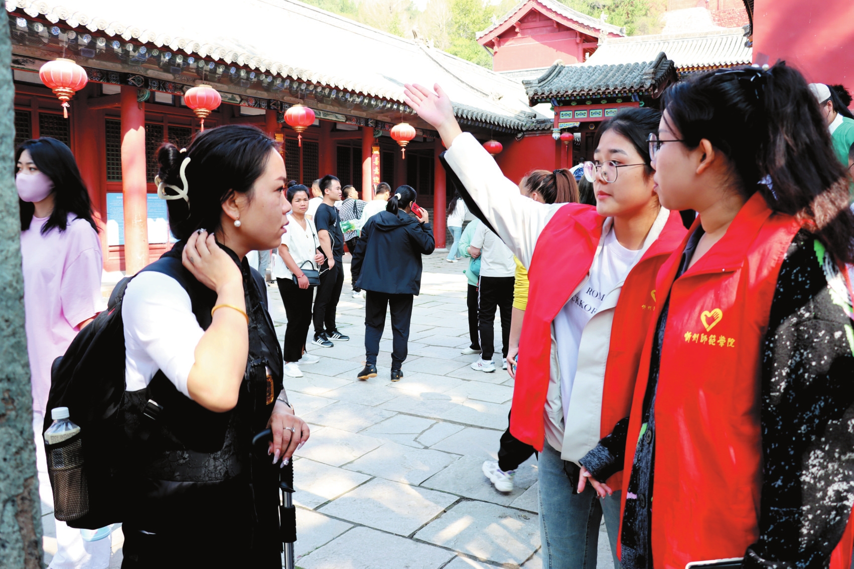 五臺山風(fēng)景名勝區(qū)志愿者積極開展文明實(shí)踐活動,為游客提供全方位服務(wù)。本報通訊員攝