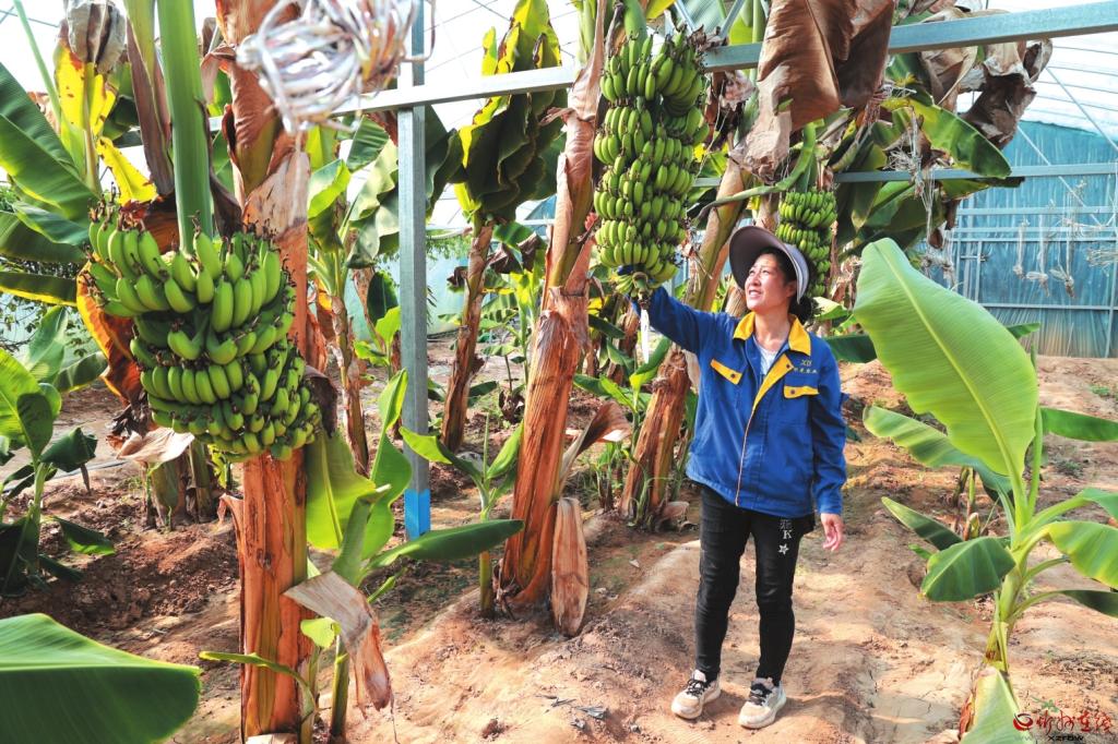 去年,侯學光在大棚開始試種“中蕉九號”?!靶酶畢^(qū)的水土環(huán)境竟與蕉苗生長條件高度契合,根系健壯少病害,首年就順利掛果。香蕉未熟時脆甜清香,成熟后軟糯可口,品質不輸南方蕉。”他興奮地向記者介紹說。通過邀請專家改良土壤、施用自產有機肥、科學規(guī)劃間距,曾經的邊角地已變身茂密蕉林。