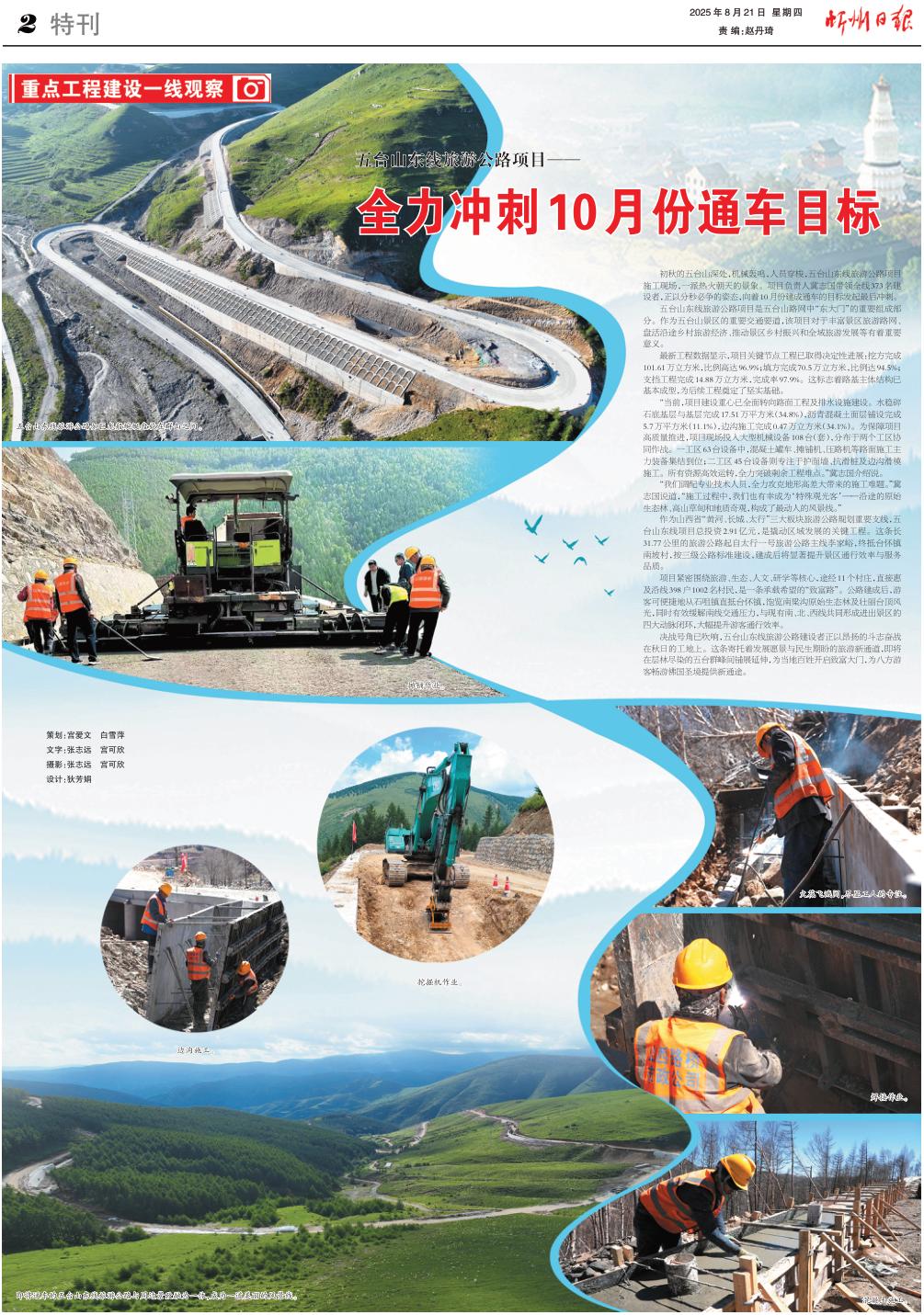 決戰(zhàn)號角已吹響,五臺山東線旅游公路建設者正以昂揚的斗志奮戰(zhàn)在秋日的工地上。這條寄托著發(fā)展愿景與民生期盼的旅游新通道,即將在層林盡染的五臺群峰間鋪展延伸,為當地百姓開啟致富大門,為八方游客暢游佛國圣境提供新通途。