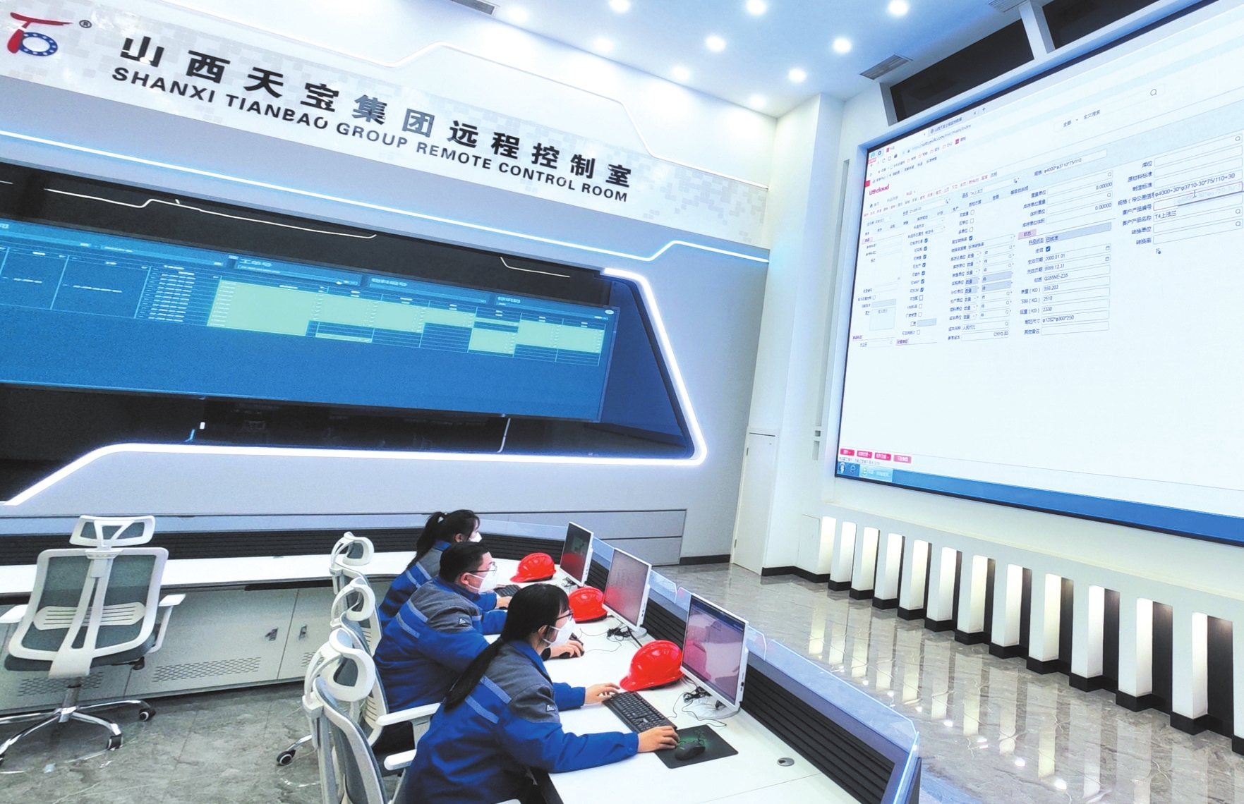 山西天寶集團工作人員正在查看訂單生產(chǎn)進度,了解設(shè)備運行情況。本報記者 張存良攝