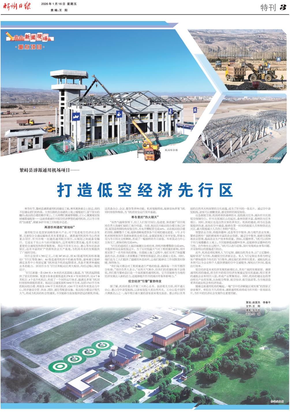寒冬時(shí)節(jié),繁峙縣滹源通用機(jī)場(chǎng)建設(shè)工地,寒風(fēng)裹挾著塵土掠過,卻擋不住建設(shè)者們的熱情。大型壓路機(jī)在凍硬的土地上緩緩前行,留下堅(jiān)實(shí)的轍??;航站綜合樓的腳手架上,工人師傅們裹著厚棉服,正小心翼翼地安裝玻璃幕墻框架——這座承載著忻州低空經(jīng)濟(jì)夢(mèng)想的通用機(jī)場(chǎng),正以冬日里的“加速度”,朝著2027年竣工目標(biāo)穩(wěn)步邁進(jìn)。
