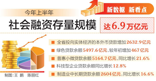 上半年,全省金融機(jī)構(gòu)本外幣各項(xiàng)貸款余額4.8萬億元,同比增長7.6%,高于全國平均水平0.8個(gè)百分點(diǎn);較年初增加2608.9億元。金融機(jī)構(gòu)持續(xù)加大對綠色低碳、普惠小微、制造業(yè)等領(lǐng)域的信貸支持力度。全省綠色貸款余額5497.6億元,較年初增加467億元。全省普惠小微貸款余額5164.7億元,同比增長21.6%。全省科技型企業(yè)貸款余額同比增長12.8%,均高于各項(xiàng)貸款增速。全省制造業(yè)中長期貸款余額2604億元,同比增長16.6%,較年初增加256.2億元。