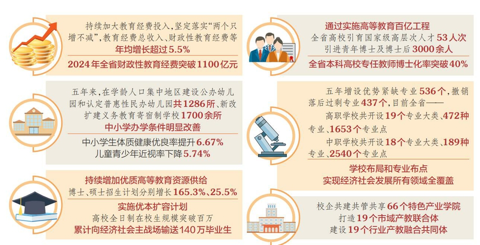 教育是國之大計(jì)、黨之大計(jì),也是每個(gè)家庭的心頭事。“十四五”以來,在省委、省政府堅(jiān)強(qiáng)領(lǐng)導(dǎo)下,全省教育系統(tǒng)深入貫徹落實(shí)習(xí)近平總書記關(guān)于教育的重要論述,全面貫徹黨的教育方針,堅(jiān)定落實(shí)教育優(yōu)先發(fā)展戰(zhàn)略,有力推動“十四五”規(guī)劃各項(xiàng)指標(biāo)任務(wù)全面完成,為“十五五”時(shí)期加快建設(shè)教育強(qiáng)省奠定了堅(jiān)實(shí)基礎(chǔ)。