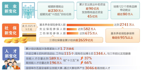 “十四五”時期,我省始終將穩(wěn)就業(yè)擺在突出位置,千方百計促進高質(zhì)量充分就業(yè)。把經(jīng)濟發(fā)展與擴大就業(yè)緊密結(jié)合起來,不斷優(yōu)化政策,為企業(yè)減負穩(wěn)崗,累計支出就業(yè)補助資金超90億元,發(fā)放穩(wěn)崗返還資金45億元。對于重點群體精準施策、分類幫扶,開展高校畢業(yè)生等青年群體就業(yè)服務攻堅行動,提供針對性就業(yè)創(chuàng)業(yè)服務。五年來,全省城鎮(zhèn)新增就業(yè)超230萬人,超額完成“十四五”目標任務,城鎮(zhèn)調(diào)查失業(yè)率控制在目標以內(nèi)。