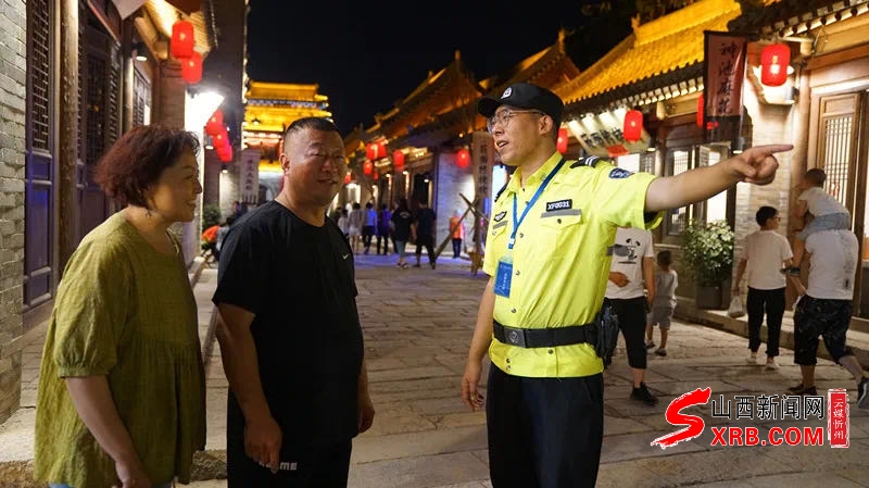 夜幕下的古城,華燈初上,忻府公安的警燈分外閃亮,巡邏民警穿梭在人群中,守護在群眾身邊,用最短時間、最快速度處理群眾緊急求助、處置各類突發(fā)警情,確保警力24小時不缺位,全力以赴守護景區(qū)和游客安全。(劉潔)