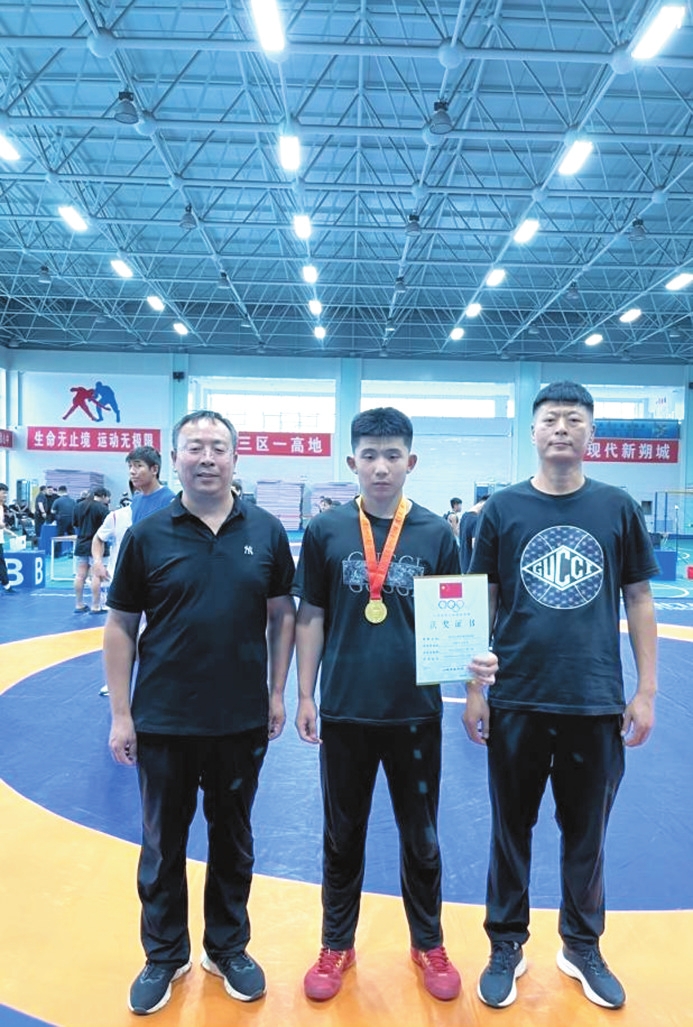 趙海豐(中)獲2024全國中學(xué)生國際式(自由式)摔跤錦標(biāo)賽85公斤級季軍。