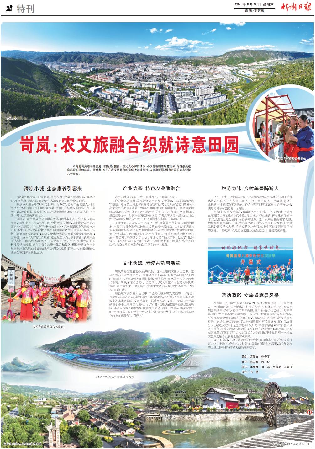 從“田間地頭”到“詩(shī)與遠(yuǎn)方”,鄉(xiāng)村旅游為農(nóng)文旅融合打通了關(guān)鍵脈絡(luò),讓“農(nóng)”有了附加值,“文”有了展示窗,“旅”有了落腳點(diǎn),最終匯成推動(dòng)鄉(xiāng)村振興的澎湃動(dòng)能。作為“千萬工程”示范樣本的王家岔村,便是岢嵐鄉(xiāng)村旅游的一個(gè)縮影。