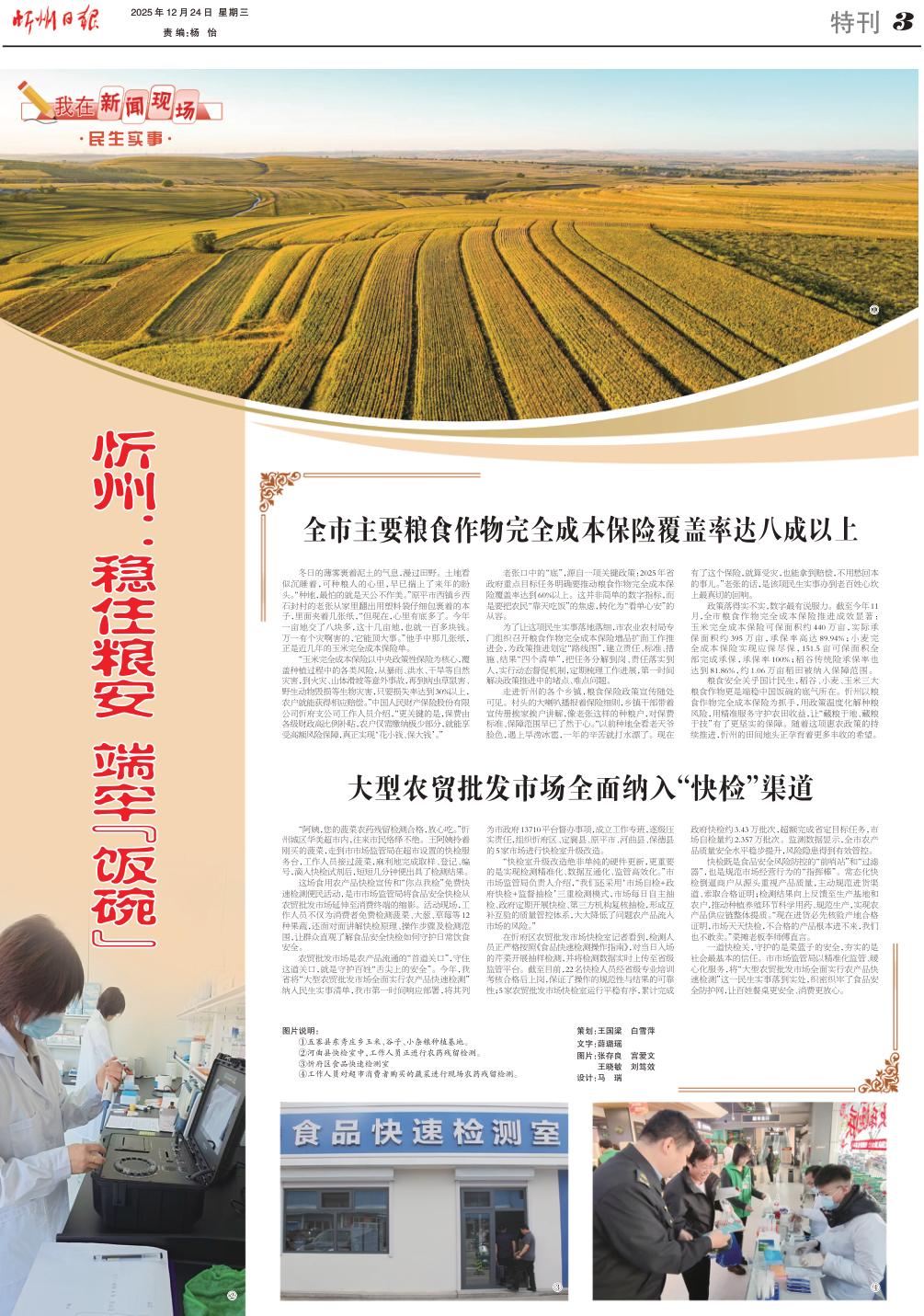 糧食安全關乎國計民生,稻谷、小麥、玉米三大糧食作物更是端穩(wěn)中國飯碗的底氣所在。忻州以糧食作物完全成本保險為抓手,用政策溫度化解種糧風險,用精準服務守護農田收益,讓“藏糧于地、藏糧于技”有了更堅實的保障。隨著這項惠農政策的持續(xù)推進,忻州的田間地頭正孕育著更多豐收的希望。
