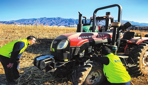 技術人員正對拖拉機進行全面“體檢”。 郭婧蕾攝