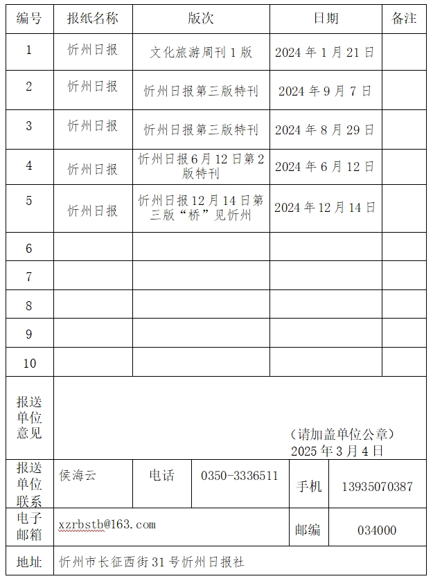 忻州市長(zhǎng)征西街31號(hào)忻州日?qǐng)?bào)社 |