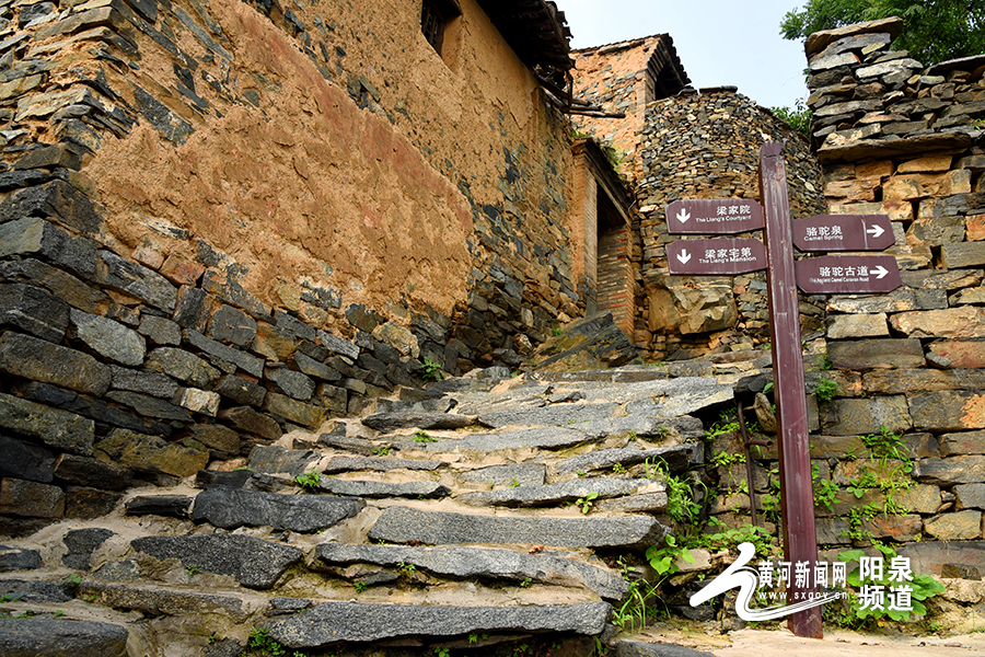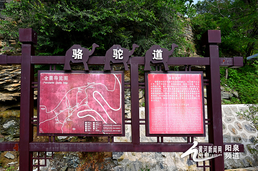 黃河新聞網(wǎng)陽泉訊(記者秦銘明)我們的汽車沿著高低起伏、曲折蜿蜒的太行山1號國家觀光旅游公路在青山間穿梭,飛鳥時(shí)不時(shí)被驚起,幽靜神秘的太行山宛如輕紗遮面的佳人,靜靜佇立。公路邊、山腰中、泉水旁,黃墻黛瓦的民居錯(cuò)落有致,青石綠苔的石階縱橫交錯(cuò),一個(gè)掩映在青山綠水中,坐落在綠樹芳草間的村落“駱駝道村”出現(xiàn)在眼前。