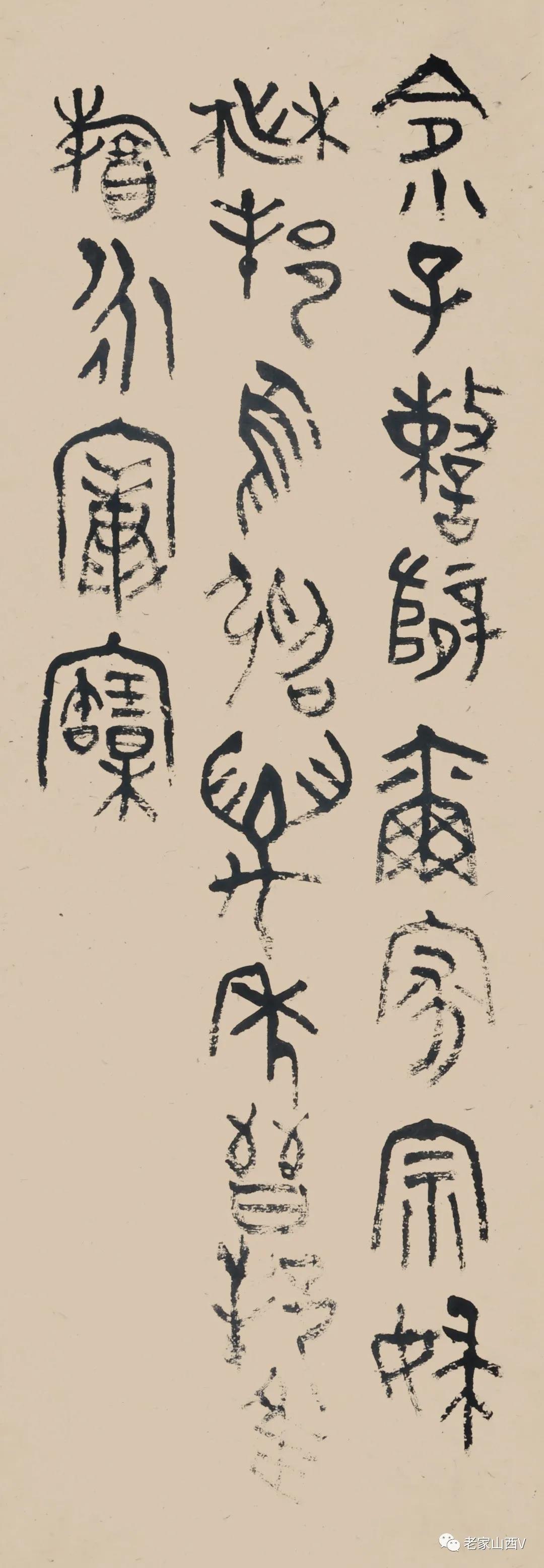 志剛先生因為是書篆并重并行,所以,這樣的實踐其實正好吻合了字——書——法的整體發(fā)展過程和規(guī)律?!白迸c單純的“書”相比較,具有綜合性,對“位置”和“筆意”的要求更高。而且,因為篆采用工具和材料的規(guī)定,最后作品呈現(xiàn)出來的作品實際上是一種近似于回到前早漢字表現(xiàn)形式——事實上現(xiàn)在的篆就是傳統(tǒng)的漢字實用性的一種專業(yè)化和細化。在這里,形與寫,硬與軟,刻與寫,鑄與寫,統(tǒng)一與個體得到了全面的發(fā)揮。