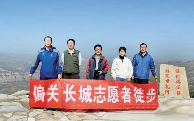 賀文(左一)與偏關長城志愿者尋找黃河邊墻