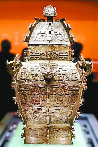 湖南省博物館藏的商代皿方罍(音雷,酒器)本報(bào)記者 李韻攝/光明圖片