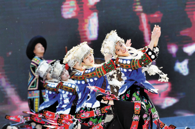 11月14日,2020吉首鼓文化節(jié)在湖南省湘西土家族苗族自治州吉首市矮寨鎮(zhèn)矮寨奇觀景區(qū)開幕,來自國內(nèi)多支鼓隊(duì)參與活動(dòng),展示了不同地域的鼓文化。圖為演員在吉首鼓文化節(jié)開幕式上表演。 新華社發(fā) 龍恩澤 攝