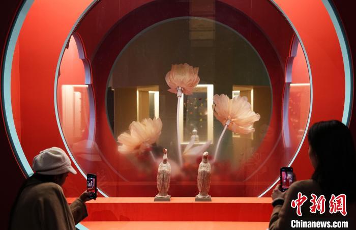 據(jù)介紹,這是蛇類紋飾作為裝飾題材出現(xiàn)在商周青銅禮器之上的一種典型代表。半人半蛇的唐代“伏羲女媧像立幅”帛畫,印證著伏羲女媧這一久遠(yuǎn)的文化信仰,通過絹帛畫形式在當(dāng)時的吐魯番地區(qū)傳播,并吸引其他民族的崇奉。此外,展廳中充滿新春氛圍感的桃花洞釉燈籠瓶、白玉“天官賜?!迸?、“好酒”白釉盤等近200余件(套)館藏文物精品,書寫著對即將到來的蛇年新春的期待和祝福。