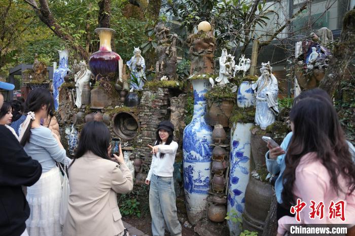 2024年11月9日,游客在江西景德鎮(zhèn)三寶村陶源谷景區(qū)打卡拍照。(資料圖)毛建軍攝