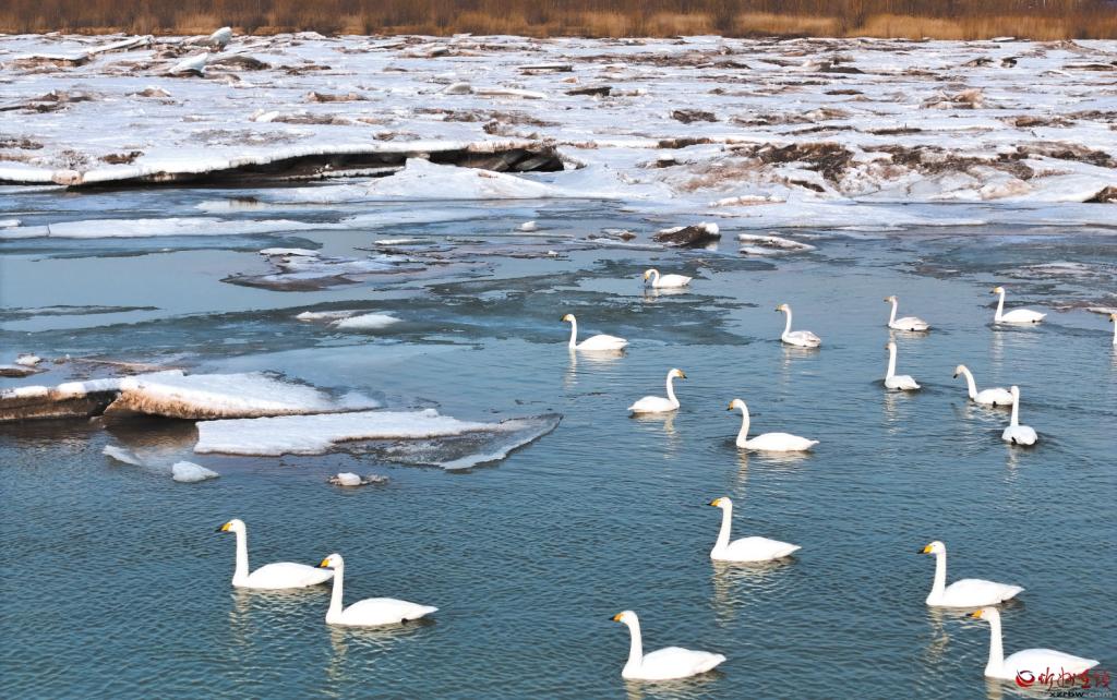 黑鸛、白鷺、天鵝、綠頭鴨等大批候鳥在此駐足。它們時而在冰面或淺灘上佇立,時而在河水中游弋,時而展翅高飛,鳴叫聲回蕩在河畔。這些候鳥的到來,不僅增添了朱家川河的生物多樣性,也成了生態(tài)恢復成效的生動寫照,成為攝影愛好者的最佳取景區(qū)。