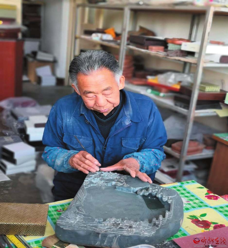 省級(jí)非遺傳承人惠東存精心制硯 資料圖