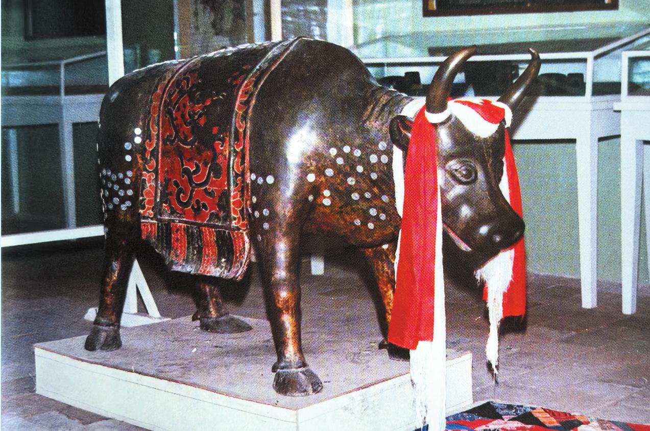 銅牛原在大社寺,因此曾被稱為“大社銅?!?。在佛教中,把三種修行的途徑比作乘坐的三種車,三車又喻為三乘,羊車喻小乘聲聞,鹿車喻中乘緣覺,牛車喻大乘菩薩。五臺山這尊銅牛、這輛銅車,正是象征著“三乘”中最為尊貴的菩薩乘。