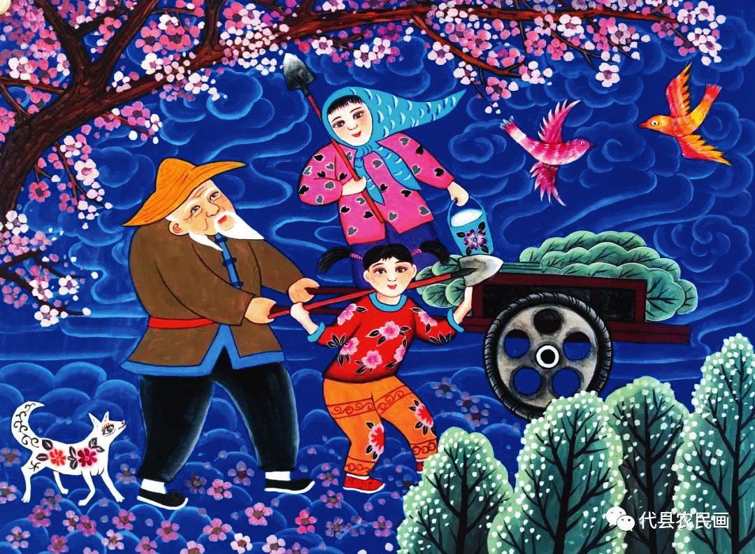 中國(guó)歷史文化名城代縣,文化底蘊(yùn)深厚,民俗傳統(tǒng)技藝精巧別致,1988年和2008年先后被文化部授予“中國(guó)民間繪畫畫鄉(xiāng)”“中國(guó)民間文化藝術(shù)之鄉(xiāng)”。該縣的農(nóng)民畫早在上世紀(jì)80年代初就在全國(guó)產(chǎn)生過較大影響,之后經(jīng)歷了一段低迷期。近年來在代縣農(nóng)民畫促進(jìn)會(huì)的推動(dòng)之下,農(nóng)民畫又重新煥發(fā)出耀眼的光彩。先后涌現(xiàn)出多位畫家,其中尤以丁全愛、戴翠平、祁磊、賈永花、郎冬梅等18位女畫家組陣的雁門巾幗,在多年鉆研繪畫技巧的基礎(chǔ)上,創(chuàng)作出一幅幅特色鮮明、獨(dú)具匠心的畫作,成為閃耀三晉大地的矩陣,為傳承、弘揚(yáng)雁門文化做出了新貢獻(xiàn)。