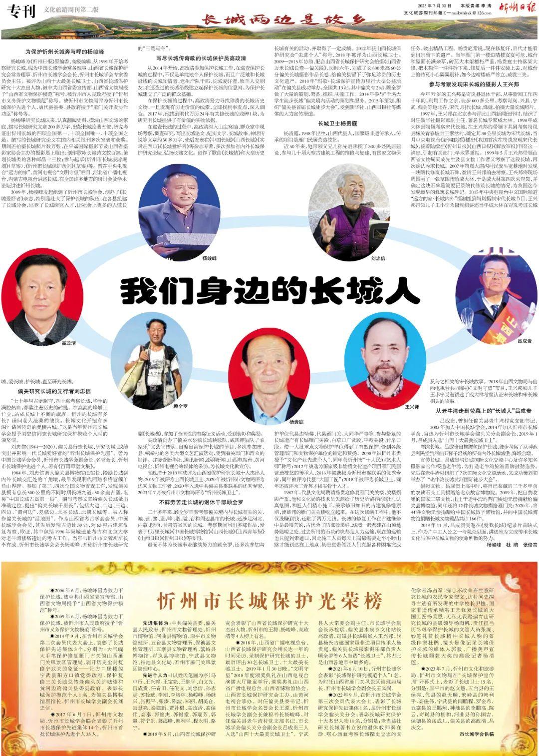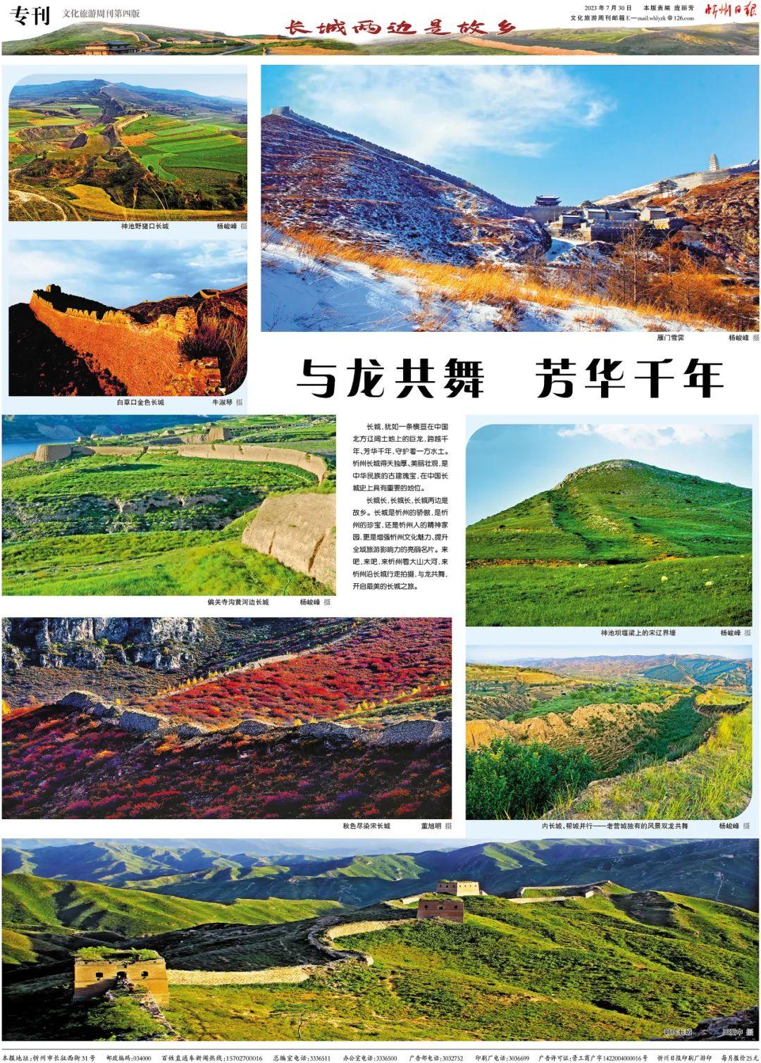 忻州日?qǐng)?bào)《文化旅游周刊》 以“長(zhǎng)城兩邊是故鄉(xiāng)”為主題 特別推出一期“忻州長(zhǎng)城???/p> 四個(gè)版面各有側(cè)重 交響合奏 解讀關(guān)鍵詞 長(zhǎng)城資源 長(zhǎng)城保護(hù) 長(zhǎng)城旅游 緊扣關(guān)鍵事 長(zhǎng)城人物 長(zhǎng)城詩(shī)詞 長(zhǎng)城攝影 講述忻州長(zhǎng)城故事 豐富忻州長(zhǎng)城文化內(nèi)涵 助力共享全國(guó)長(zhǎng)城保護(hù)成果 01
