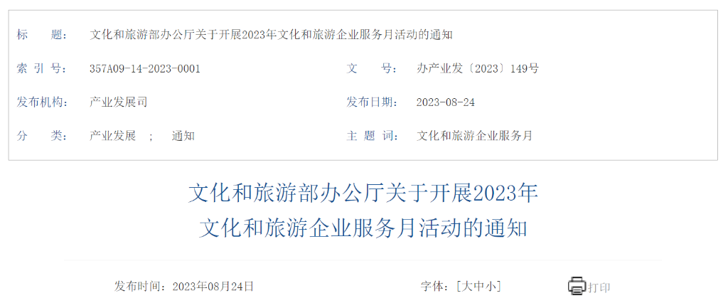 記者8月24日從文化和旅游部了解到,文化和旅游部將于9月開(kāi)展2023年文化和旅游企業(yè)服務(wù)月活動(dòng)。服務(wù)對(duì)象為各類文化和旅游企業(yè),包括文化和旅游領(lǐng)域個(gè)體工商戶。