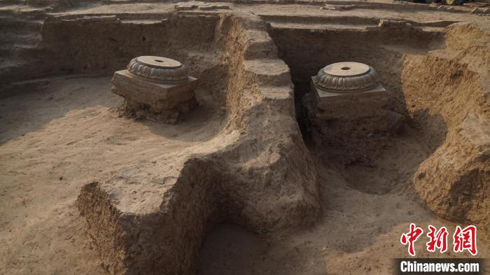 2018年11月25日,鄴南城宮城區(qū)206號大殿出土蓮花覆盆檐礎(chǔ)。(鄴城考古隊(duì)供圖)