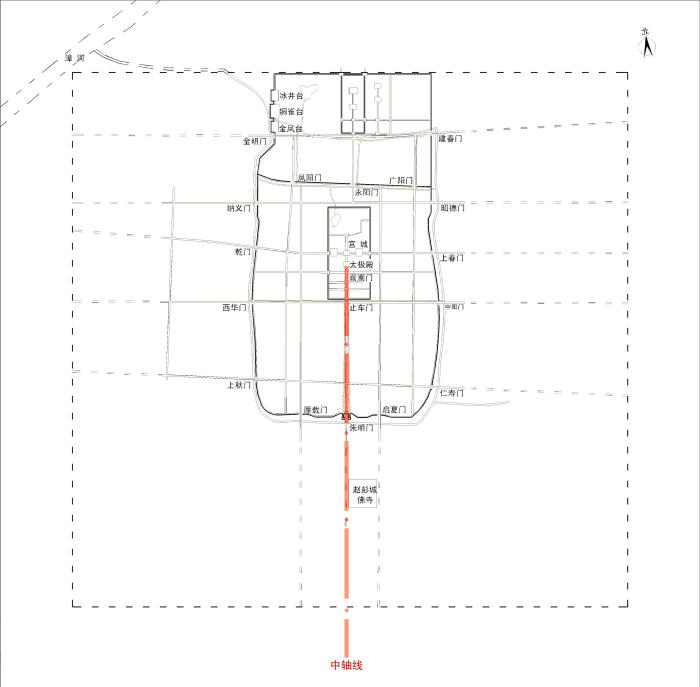 鄴城平面布局與中軸線示意圖。(鄴城考古隊(duì)供圖)