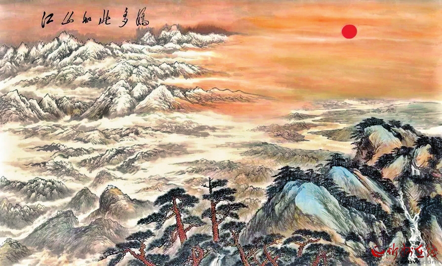 近現(xiàn)代以來,隨著人們多維的欣賞能力和畫家對自然觀察能力的深入,雪景山水畫在內(nèi)容方面有了顯著變化。這種轉(zhuǎn)型雖仍以“師造化”為基礎(chǔ),但西方繪畫理論的引進(jìn),透視、光影等要素的借鑒,使繪畫技法表現(xiàn)出新的發(fā)展趨勢。中國雪景山水畫在新歷史時期,順應(yīng)發(fā)展契機(jī),得到振興。20世紀(jì)初,陶冷月便致力于中西融合的探索,將圓月、雪山、淡云等和諧統(tǒng)一在一片冷逸空靈的詩意世界中。他的《雪月山水圖》中,水面因月光反射閃爍著波光,這也是他營造意境的獨特手法,使之更為靈動。傅抱石一改明清輕柔疏淡的氣息,彰顯民族振奮的活躍力。他與關(guān)山月合作繪成的《江山如此多嬌》,將詩詞中“北國風(fēng)光,千里冰封,萬里雪飄”的壯闊場景表現(xiàn)得淋漓盡致。