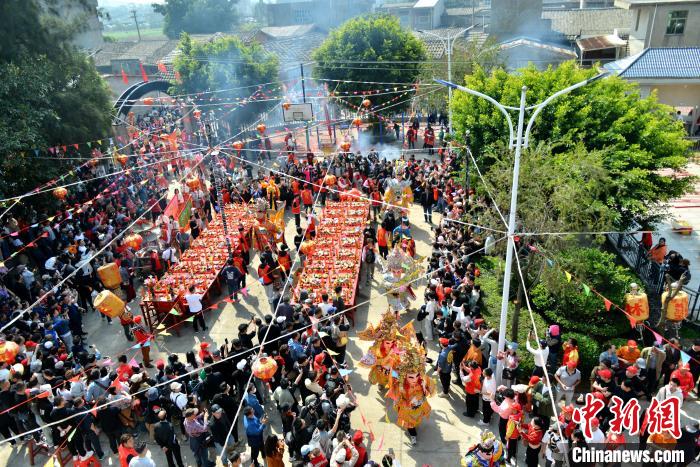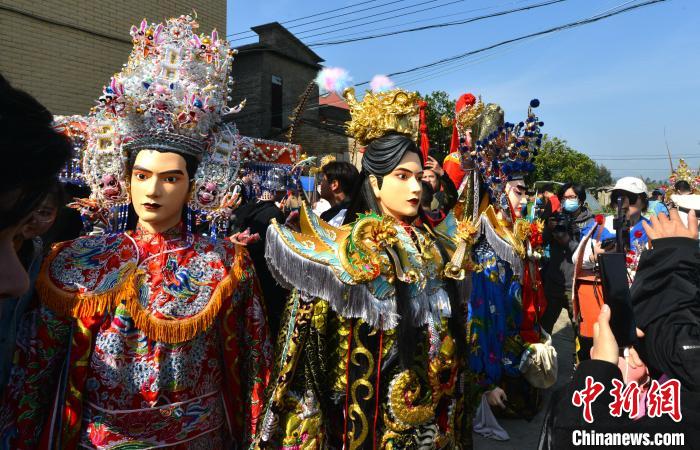 圖為傳統(tǒng)游神民俗活動中的巡游隊伍。中新網(wǎng)記者 呂明 攝