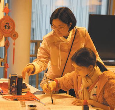 2月3日,在法國(guó)巴黎中國(guó)文化中心“走進(jìn)中心過(guò)大年”活動(dòng)中,學(xué)員體驗(yàn)中國(guó)書(shū)法。本報(bào)記者 尚凱元攝