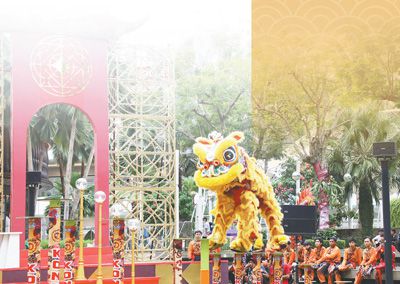 2月3日,在印尼雅加達(dá)翠貝卡廣場(chǎng)上,人們舉行舞獅表演喜迎新春。本報(bào)記者 曹師韻攝