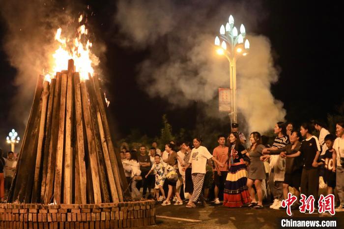 跳躍的火苗映出男女老少微笑的面龐,人們手牽著手,圍著熊熊燃燒的巨大篝火,隨著音樂的律動跳起達(dá)體舞,狂歡的夜晚似乎沒有盡頭……29日晚,在四川省涼山州西昌市,燃燒的火把映紅了天空。