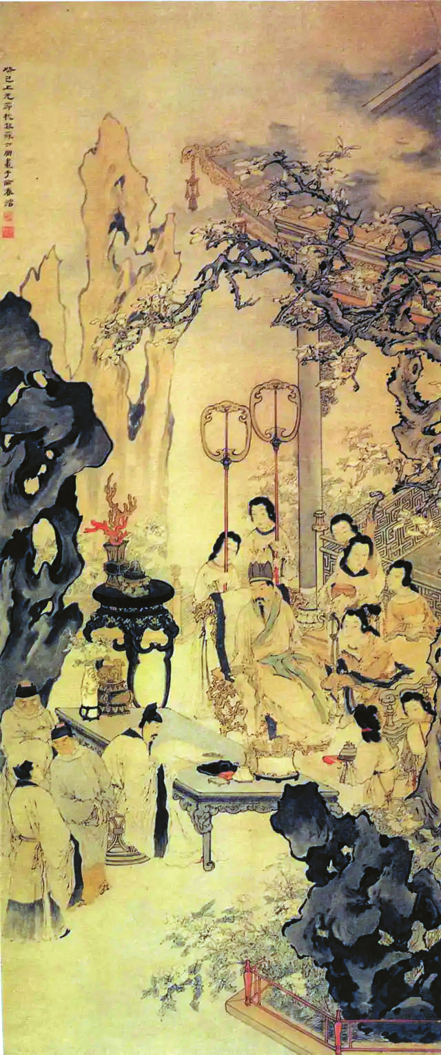唐人李濬的《松窗雜錄》載,李白在長(zhǎng)安任翰林待詔時(shí),一日宮中牡丹綻放,唐玄宗與楊貴妃前往賞花,找來李龜年等人奏樂歌唱。但玄宗看了歌單,覺得都是些過氣的舊曲子,配不上眼前的名花美女,就讓李龜年趕快去找李白填新詞。當(dāng)時(shí)李白宿醉未醒,趁著酒力秉筆賦詞,當(dāng)場(chǎng)寫就三首《清平調(diào)》歌頌楊貴妃的美貌。待李龜年唱完,楊貴妃很高興,還親自領(lǐng)唱了這三首歌。唐玄宗也吹著玉笛伴奏,由此奠定了李白在盛唐詩(shī)壇“一哥”的重要地位。李白創(chuàng)作樂府詩(shī)的事情被收入《舊唐書》:“玄宗度曲,欲造樂府新詞,亟召白,白已臥于酒肆矣。召入,以水灑面,即令秉筆,頃之成十余章,帝頗嘉之?!边@段關(guān)于李白的佳話,在中國(guó)詩(shī)歌史上留下濃墨重彩的一筆。
