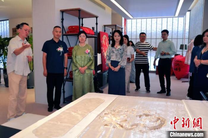 同時(shí),婚禮文創(chuàng)展還設(shè)置“婚書”“百圖”拓印等互動(dòng)體驗(yàn),讓民眾在參與中感受傳統(tǒng)文化的魅力。