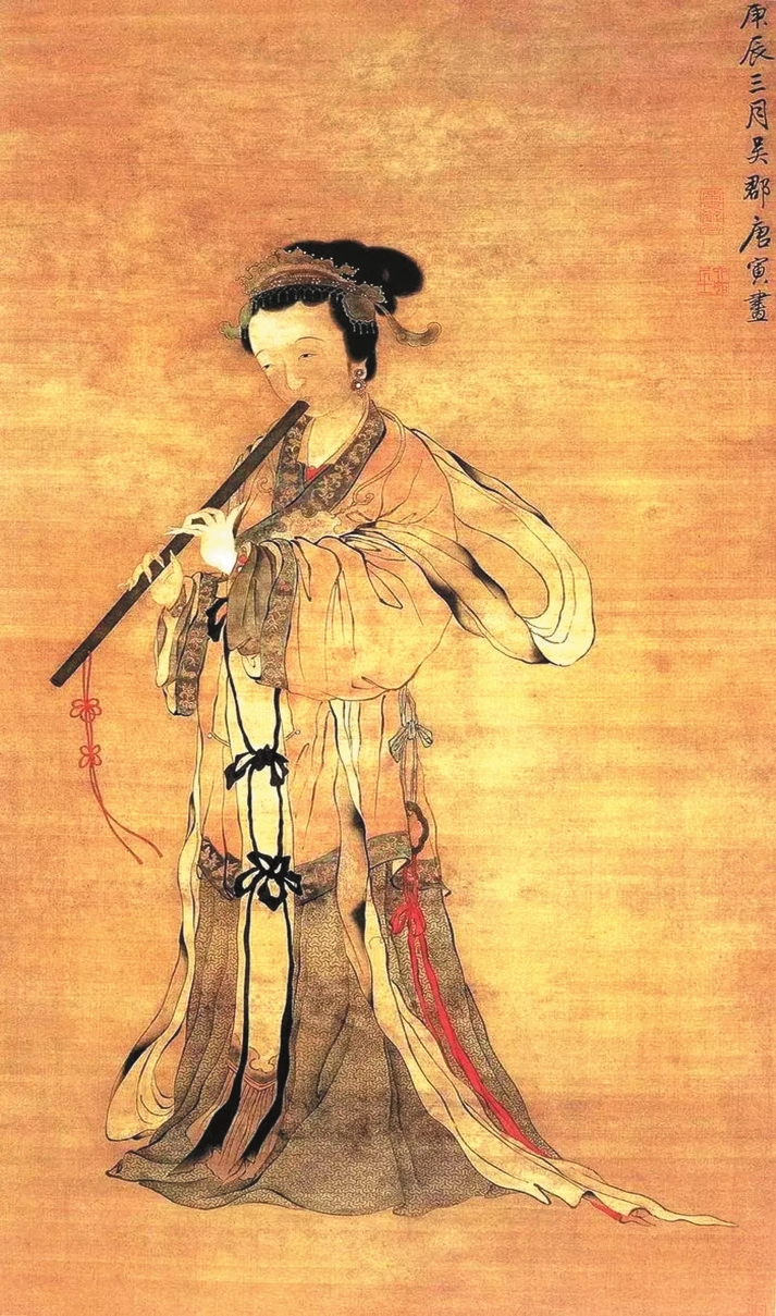 唐代稱笛聲為“龍吟”,稱簫為“鳳簫”。以龍鳳稱笛簫,可見(jiàn)這兩件竹樂(lè)器在眾多樂(lè)器中的地位。李白詩(shī)云:“笛奏龍吟水,簫鳴鳳下空。”其實(shí),簫和笛在吹奏方式上明顯不同,笛子要橫著吹,簫要豎著吹,而且簫音量較小,音色輕柔,比起笛子的音色,更有一種幽怨之意。相傳在當(dāng)年的垓下之圍中,張良就用簫勾起了楚軍將士的思鄉(xiāng)之情。篪也是一種需要橫吹的樂(lè)器,但是開(kāi)口在管的中間,吹奏時(shí)持管的方式有點(diǎn)像在舉杠鈴。