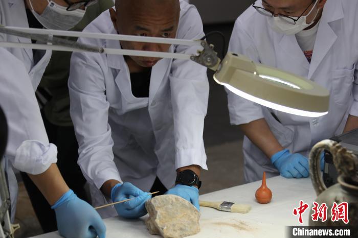 5月20日,河南洛陽(yáng),龍門(mén)石窟研究院的“文物醫(yī)生”對(duì)文物進(jìn)行修復(fù)。 中新社記者 闞力 攝