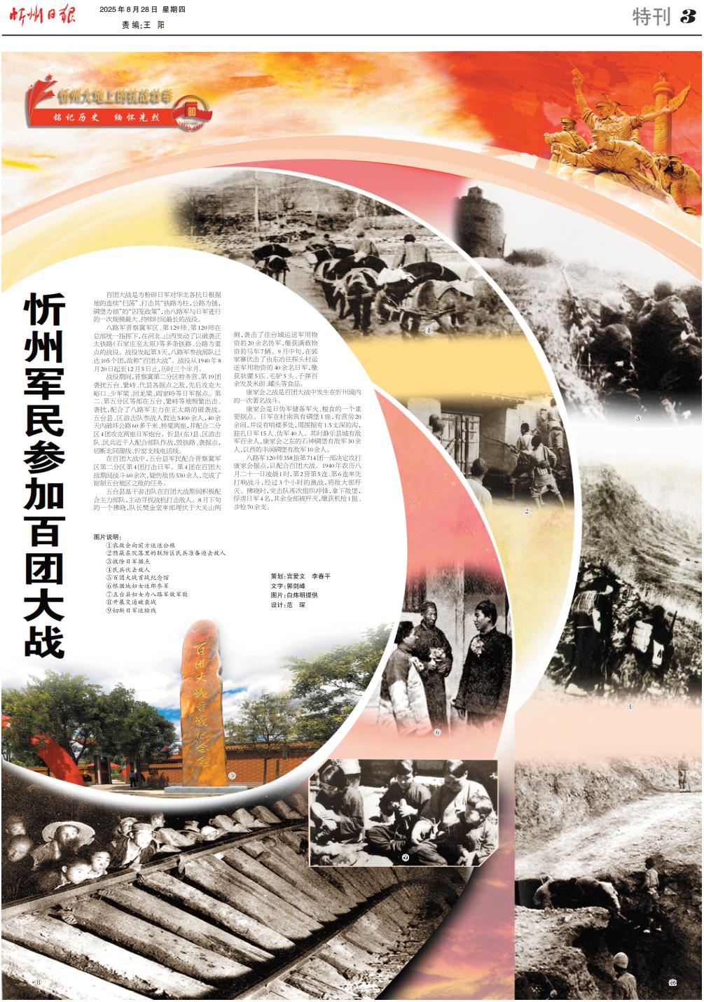 在百團大戰(zhàn)中,五臺縣軍民配合晉察冀軍區(qū)第二分區(qū)第4團打擊日軍。第4團在百團大戰(zhàn)期間戰(zhàn)斗60余次,斃傷敵偽530余人,完成了鉗制五臺地區(qū)之敵的任務。