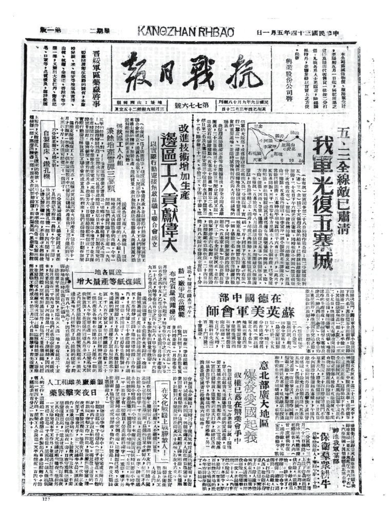 抗戰(zhàn)時期,忻州既是晉察冀、晉綏兩大根據(jù)地的中心腹地,也是抗戰(zhàn)初期全面抗敵的主戰(zhàn)場。忻州以其地理咽喉、戰(zhàn)役要沖、根據(jù)地核心和人民戰(zhàn)爭典范的多重角色,成為抗日戰(zhàn)爭中抵御日軍侵略、堅持?jǐn)澈蠖窢幍膽?zhàn)略支點之一。其歷史貢獻(xiàn)不僅體現(xiàn)在軍事上,更彰顯了中華民族不屈不撓的抗戰(zhàn)精神。隨著八路軍平型關(guān)大捷、雁門關(guān)伏擊戰(zhàn)、夜襲陽明堡飛機(jī)場等戰(zhàn)役勝利,1937年11月7日晉察冀軍區(qū)在五臺成立。12月11日,《抗敵報》誕生。1940年11月,《抗敵報》改名為《晉察冀日報》,鄧拓任報社主任。《抗敵報》最初在五臺石嘴村石印,后改鉛印。1938年1月,晉察冀邊區(qū)行政委員會在河北阜平成立,兩月后,邊區(qū)行政委員會遷駐五臺射虎川臺麓寺,報社、印刷廠分駐?;垅帧⒏蝮∈欧鹚?。1940年9月18日,晉綏分局機(jī)關(guān)報《抗戰(zhàn)日報》,伴隨著隆隆炮火聲,在距離忻州不遠(yuǎn)的興縣艱難創(chuàng)刊。自此,那些戰(zhàn)地記者、通訊員甚或普通民眾,有名的,無名的,以個人名義,以集體名義,在極其艱苦的條件下,用滾燙筆尖秉筆直書,為我們珍存了那些發(fā)生在忻州大地上前仆后繼、可歌可泣的抗戰(zhàn)故事,也讓今天的人們一旦捧讀就會熱血沸騰。