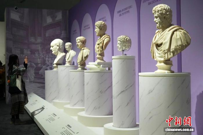 羅馬帝國首位皇帝——奧古斯都(原名“蓋烏斯·屋大維”),第一位留胡子的羅馬皇帝——哈德良,著有《沉思錄》的羅馬“五賢帝”之一——馬可·奧勒留……26件羅馬皇帝貴族半身像的集中亮相,則勾勒出古羅馬從城邦崛起為帝國的歷史過程。